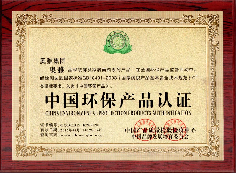 家居面料環(huán)保證書