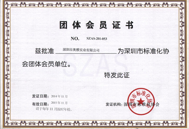 深圳市質(zhì)量協(xié)會(huì)會(huì)員證書
