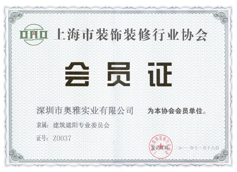 上海市裝飾裝修行業(yè)協(xié)會(huì)會(huì)員證