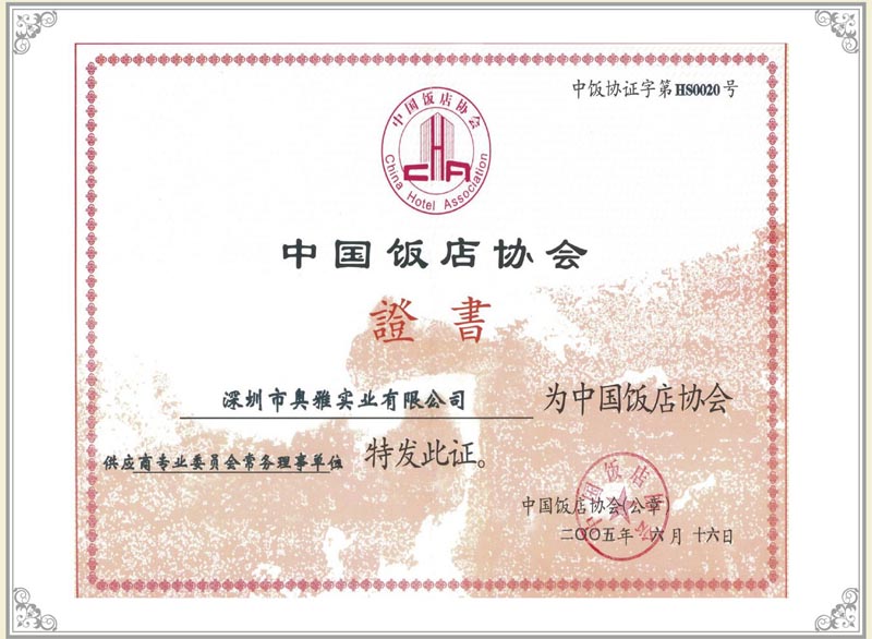 中國(guó)飯店協(xié)會(huì)證書